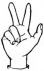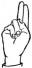 На ћирилици написано ДУБРАВКО КЛИНЦОВ састоји се из 15 слова [?]. Исписано ћириличном једноручном азбуком за глувонеме: